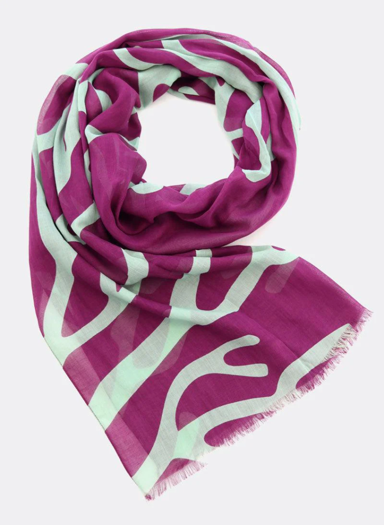 Leichter, weicher Schal. Fein gewebt aus 58% Modal(Lenzing) und 42% Baumwolle (kbA). Großflächiges Motiv.